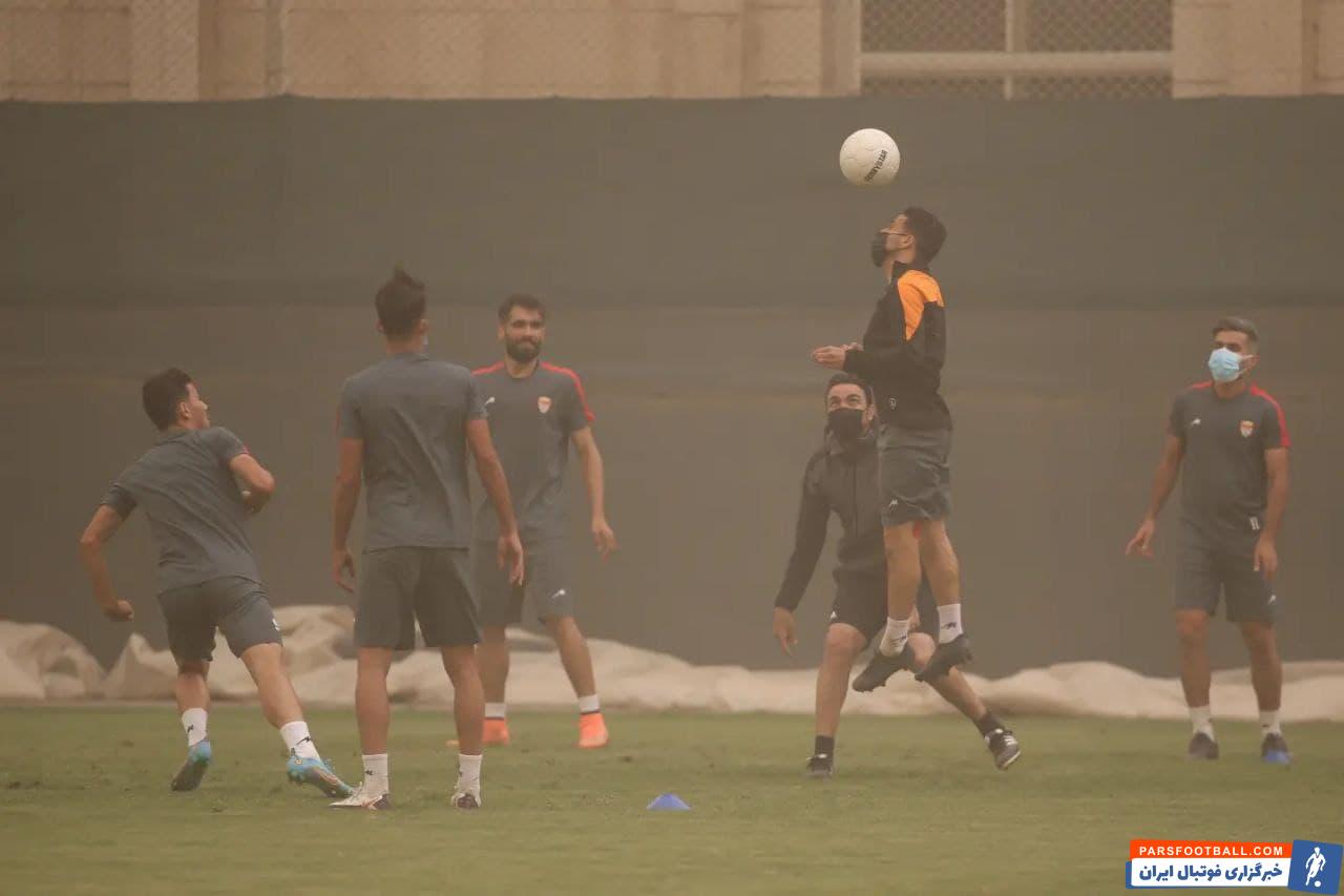 تمرین امروز فولاد خوزستان زیر نظر جواد نکونام در شرایطی برگزار شد که هوای اهواز کاملا تحت تاثیر گرد و خاک پر از ریزگرد بود و بسیار ناسالم به نظر می رسید.