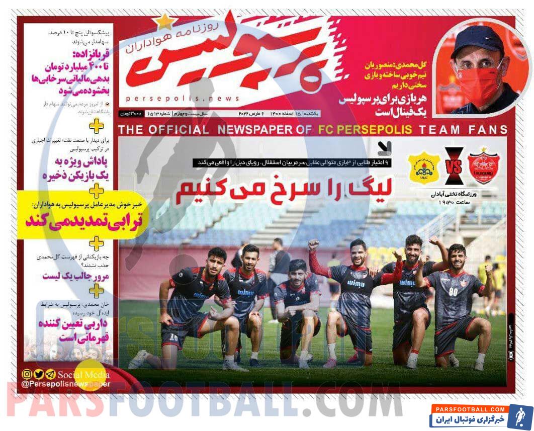 مرور عناوین مهم روزنامه پرسپولیس یکشنبه 15 اسفند ماه 1400