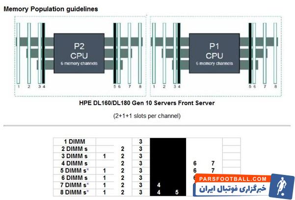 جهت دست یابی به بالاترین بازدهی در مورد مموری های سرور DL180 G10 ، توجه داشته باشید که بهتر است مموری ها به صورت بالانس میان پردازنده های نصب شده بر روی سرور ، تقسیم شوند.