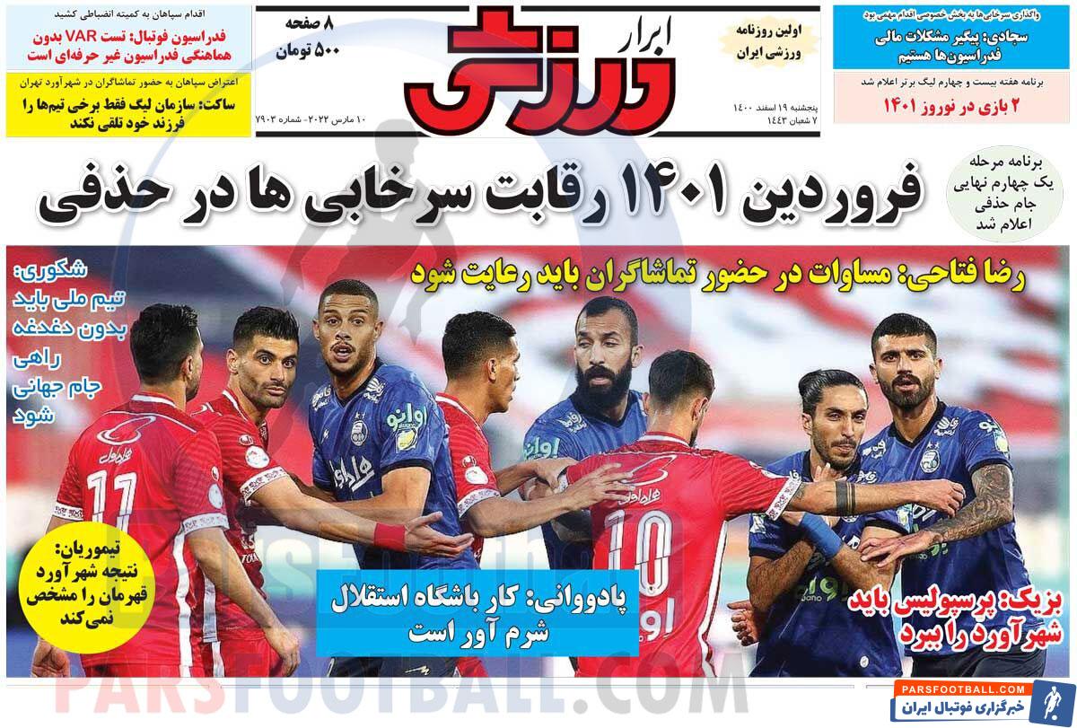مرور عناوین مهم روزنامه ابرار ورزشی پنجشنبه 19 اسفند ماه 1400