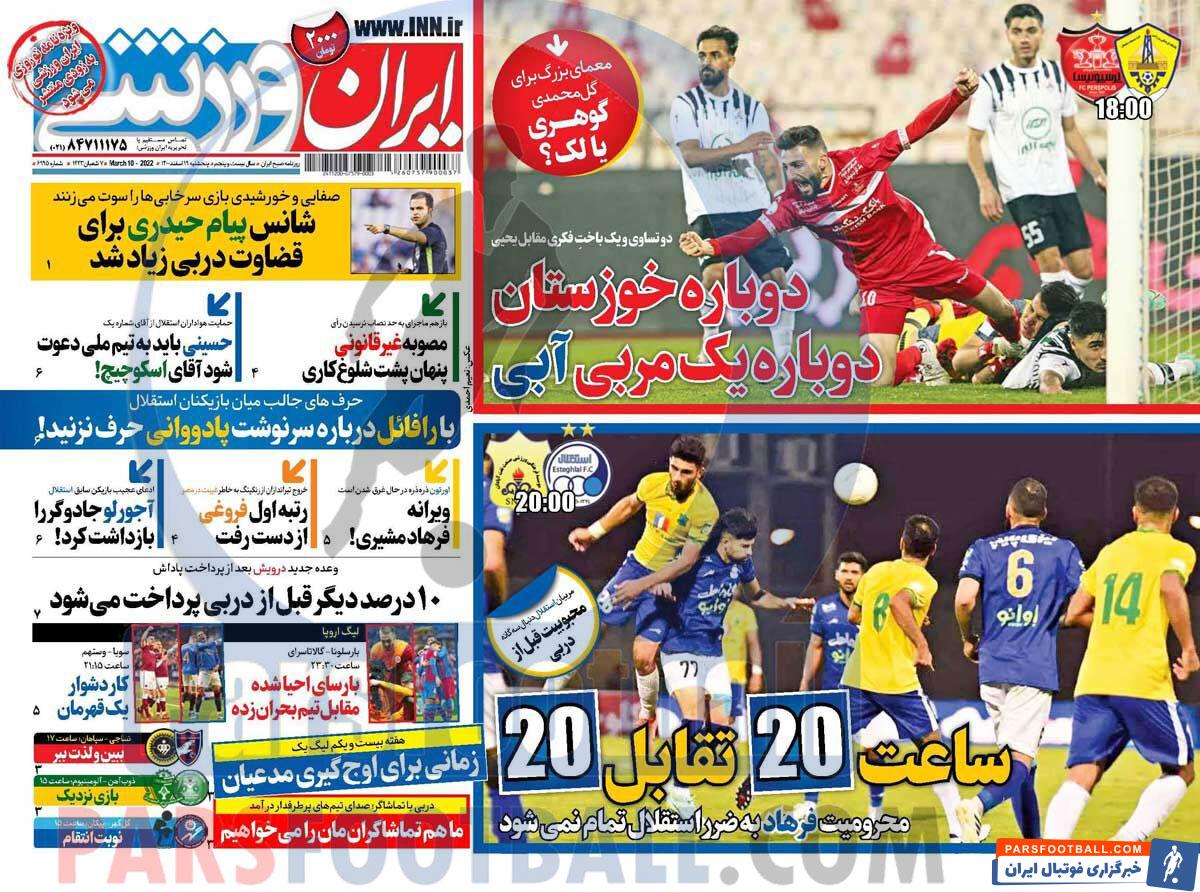 مرور عناوین مهم روزنامه ایران ورزشی پنجشنبه 19 اسفند ماه 1400