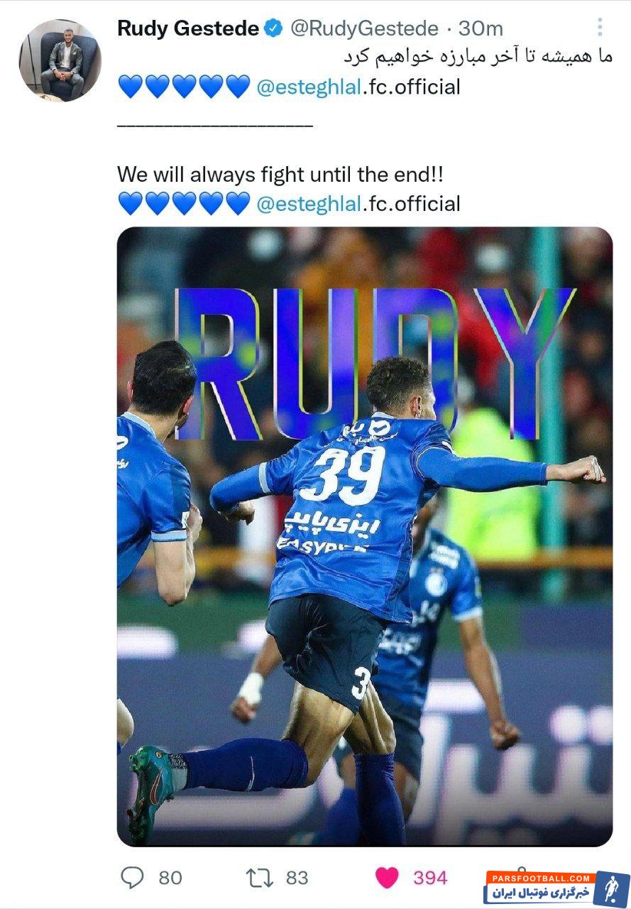 پست توییتری رودی ژستد پس از گلزنی مقابل پرسپولیس : تا پایان برای قهرمانی مبارزه خواهیم کرد