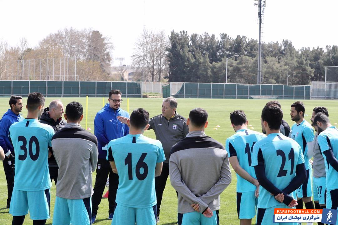اعضای کادر فنی تیم ملی پیش از شروع تمرین امروز دیداری هم با اعضای کادر فنی تیم ملی امید داشتند. اسکوچیچ و مهدوی کیا دقایقی در زمین چمن با یکدیگر گفت و گو کردند و سپس سرمربی تیم ملی شاگردانش را دور خود جمع کرده و برای آنها صحبت کرد. تمرین ملی پوشان بعد از صحبت های سرمربی شروع شد و بازیکنان زیر نظر اعضای کادر فنی به انجام حرکات تعیین شده پرداختند.