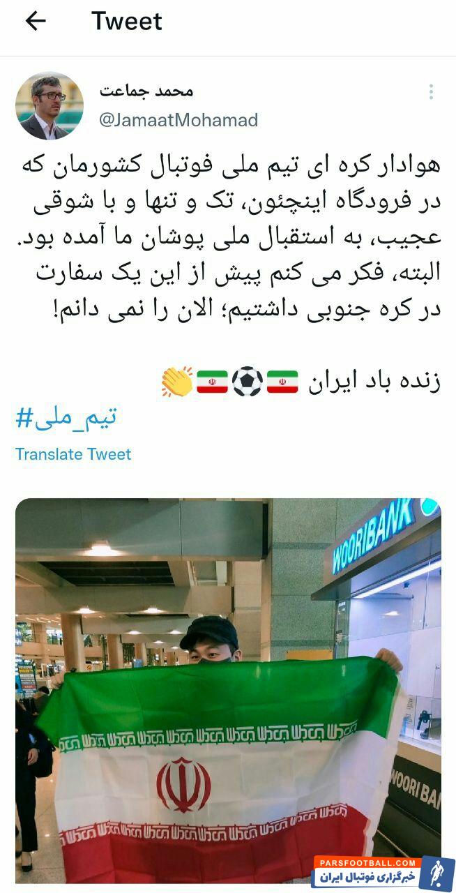 محمد جماعت ، مدیررسانهای تیم ملی فوتبال درباره استقبال از کاروان تیم ملی در سئول توئیتی را با کنایه منتشر کرد که نشان دهنده دلخوری آنها از استقبال ضعیف در کره است.