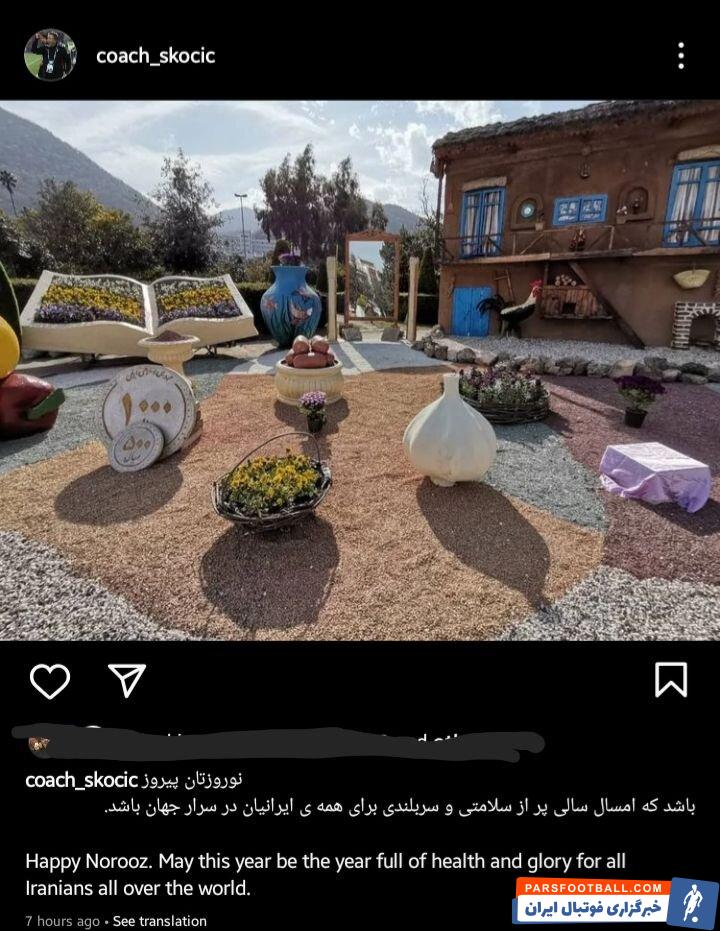 دراگان اسکوچیچ سرمربی تیم ملی فوتبال ایران با انتشار پستی نوروز ۱۴۰۱ را به مردم ایران تبریک گفت.