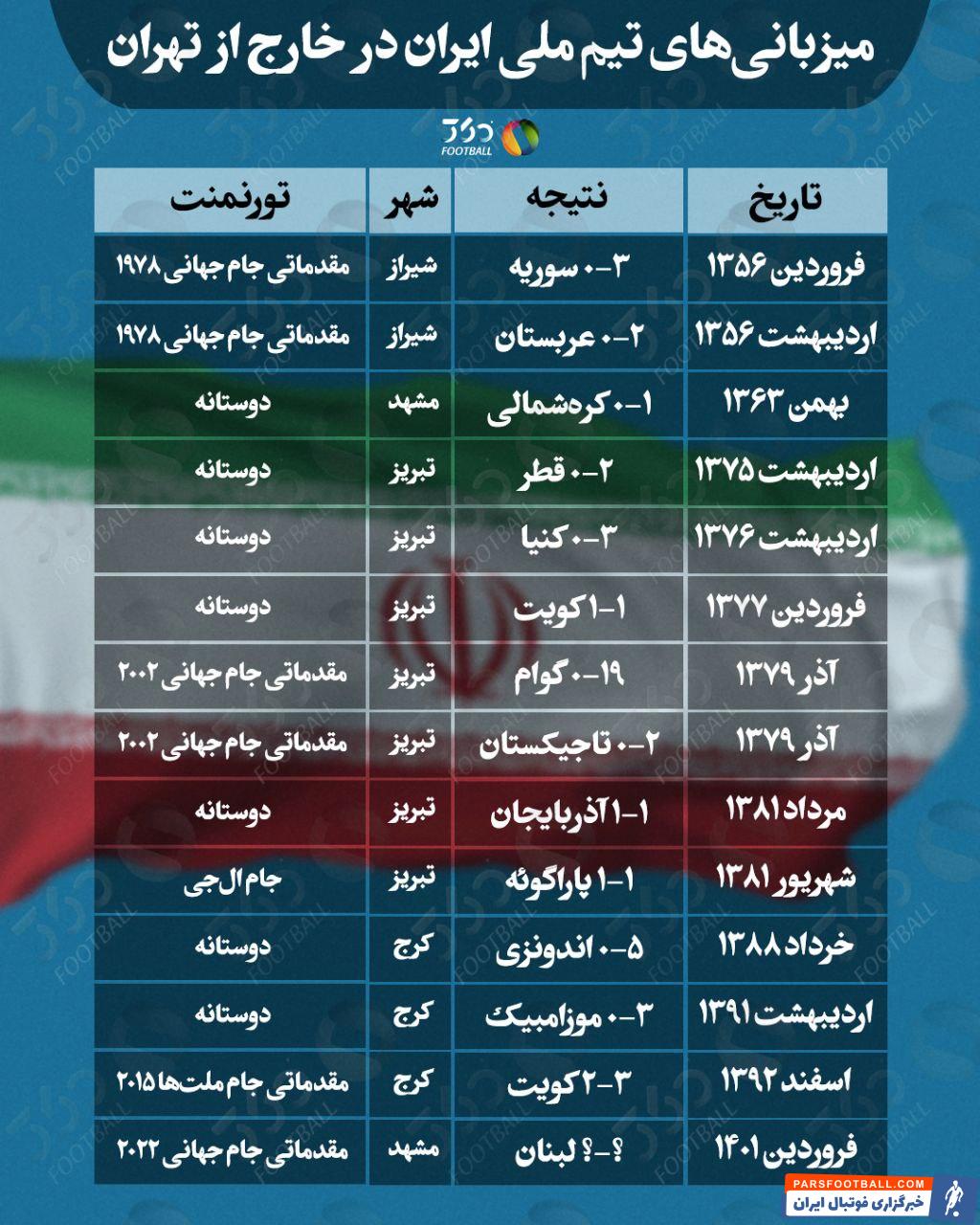تیم ملی فوتبال ایران در آخرین دیدار خود در مسابقات انتخابی جام جهانی ۲۰۲۲ قطر را به میزبانی مشهد مقدس مقابل لبنان برگزار خواهد کرد تا تیم ملی پس از سالها خارج از تهران میزبان یکی از رقبای خود باشد.