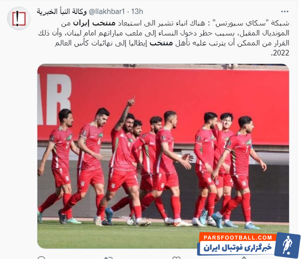 سایت «العربیه» عربستان با ذوق زدگی اعلام کرد احتمال دارد ایران از جام جهانی ۲۰۲۲ قطر کنار گذاشته شود و تیم ملی ایتالیا کاندیدای اصلی جانشینی ایران است.