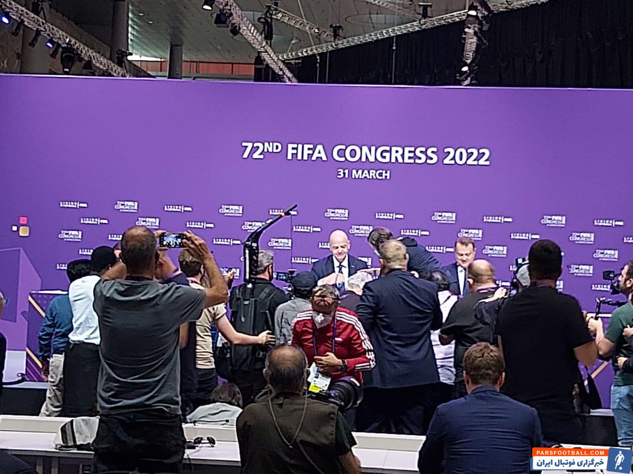 جیانی اینفانتینو رییس سوییسی فیفا بعد از پایان هفتاد و دومین کنگره جهانی فیفا در دوحه، در یک نشست خبری پاسخگوی سئوالات رسانهها بود.