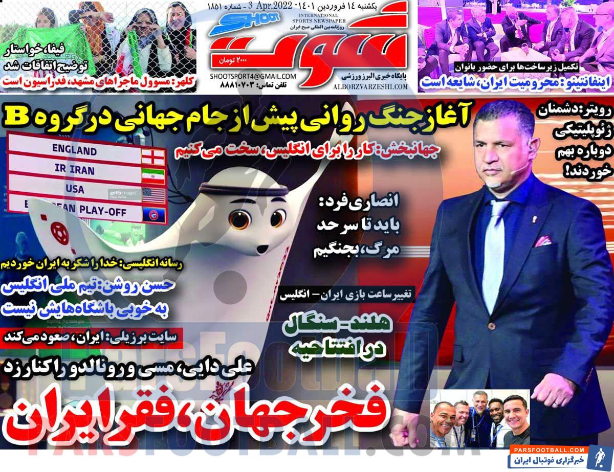 عناوین روزنامه شوت یکشنبه ۱۴ فروردین ماه به شرح زیر است :
