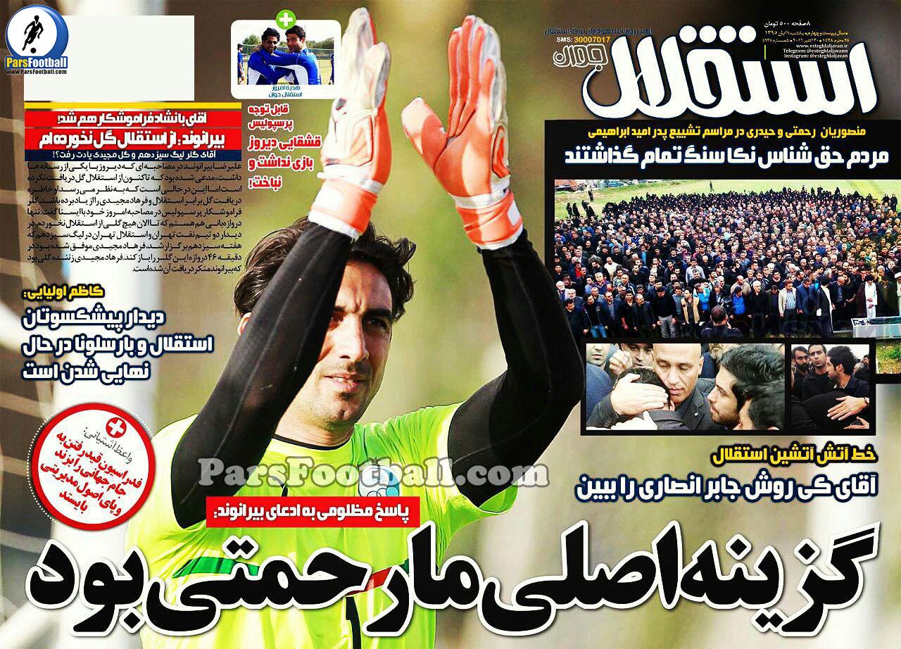 روزنامه استقلال جوان یکشنبه ۹ آبان ۹۵ | گزینه اصلی ما رحمتی بود