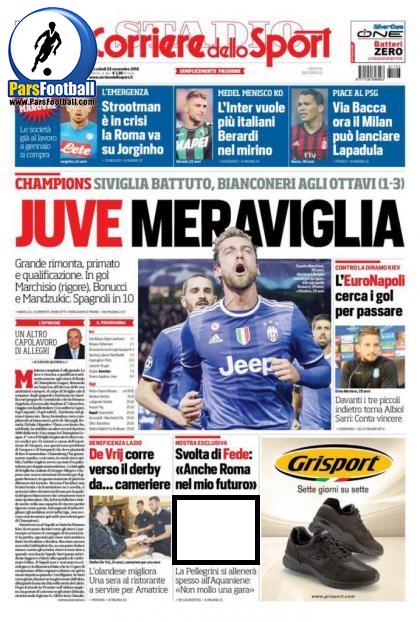 تیتر های نشریهی کوریره دلو اسپورت در روز چهارشنبه ۲۳ نوامبر به این شرح است :