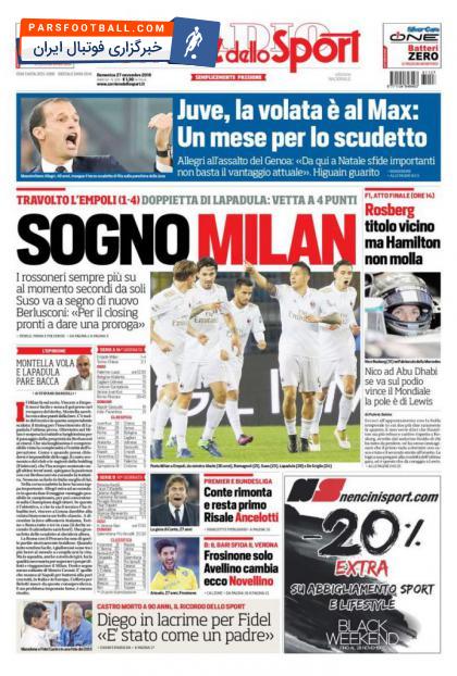 عناوین نشریه‌ی معتبر کوریره دلو اسپورت در روز یکشنبه ۲۷ نوامبر