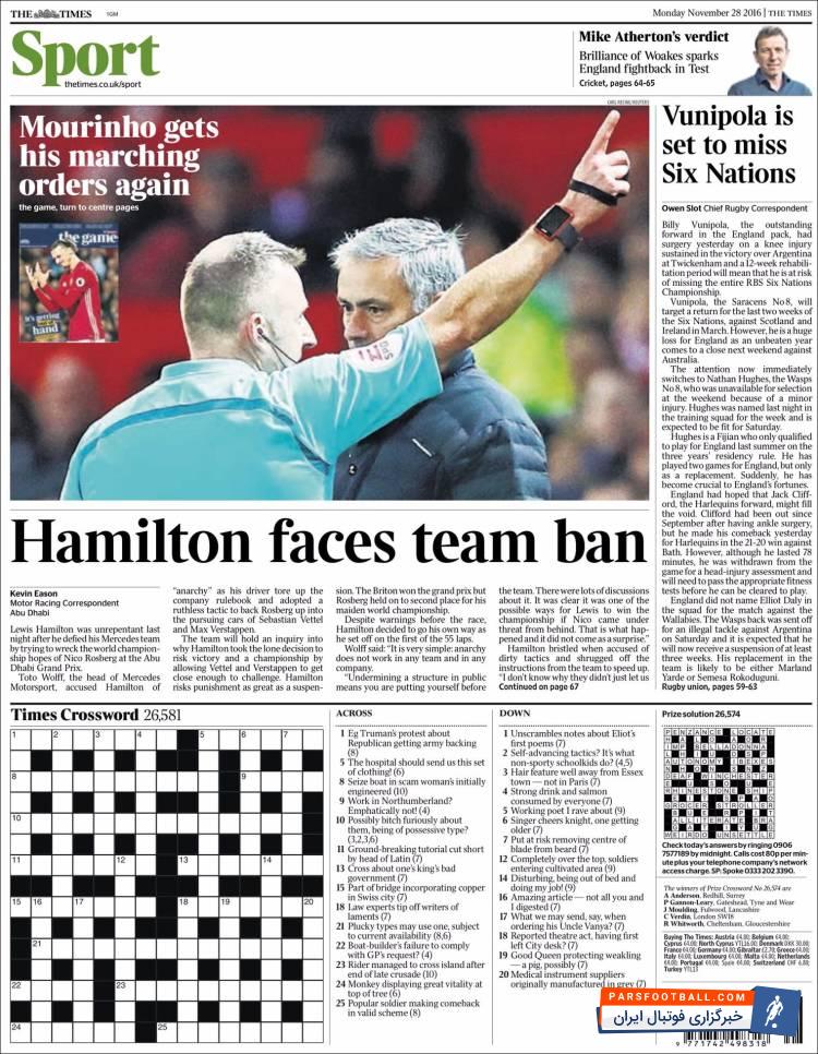 تایمز : مورینیو باز هم دستور خروج گرفت