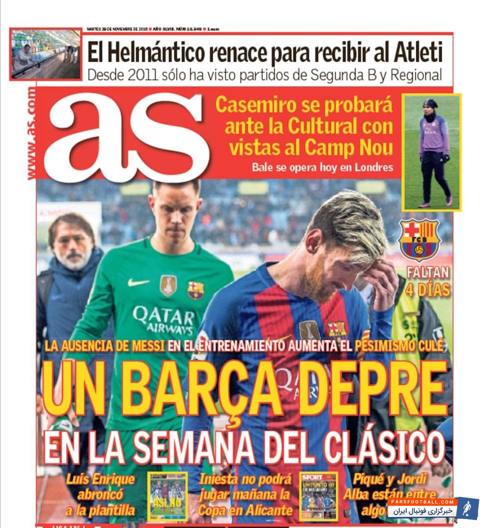 تیتر های نشریهی آس چاپ اسپانیا در روز سهشنبه ۲۹ نوامبر به این شرح است :