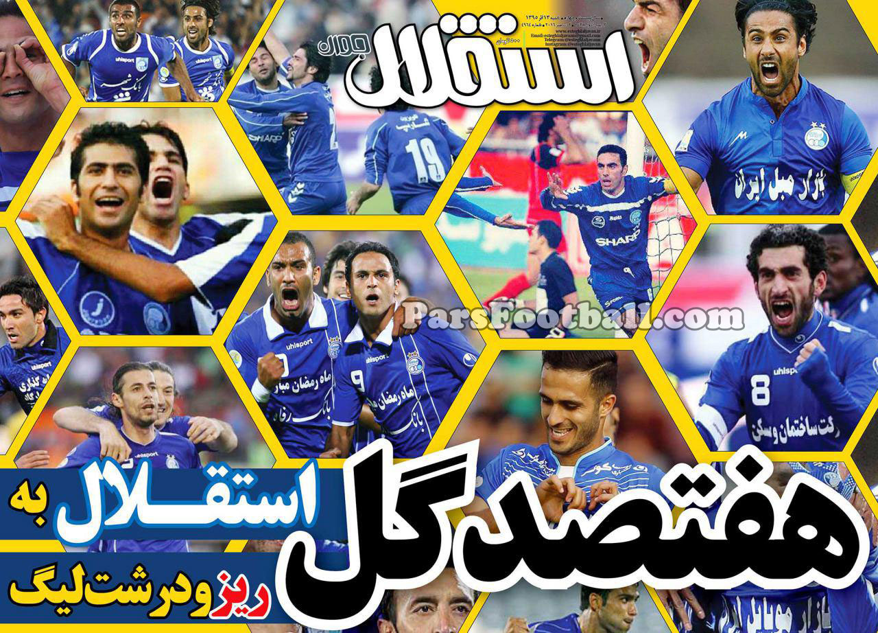 مروری داریم بر عناوین روزنامه استقلال جوان شنبه ۱۳ آذر ۹۵ ؛ هفتصدمین گل استقلال به ریز و درشت لیگ