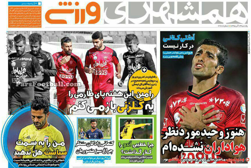 روزنامه همشهری ورزشی یکشنبه ۱۴ آذر ۹۵ ؛ هنوز وحید مورد نظر هواداران نشده ام ؛ رامین : این هفته پای طارمی را به گلزنی باز می کنم