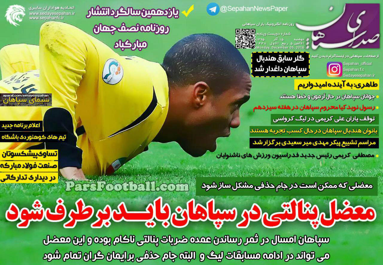 روزنامه صدای سپاهان دوشنبه 15 آذر 95 ؛ معضل پنالتی در سپاهان باید برطرف شود