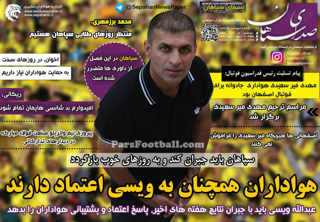 روزنامه صدای سپاهان سهشنبه 16 آذر | سپاهان در این فصل از داوری ها متضرر شده است