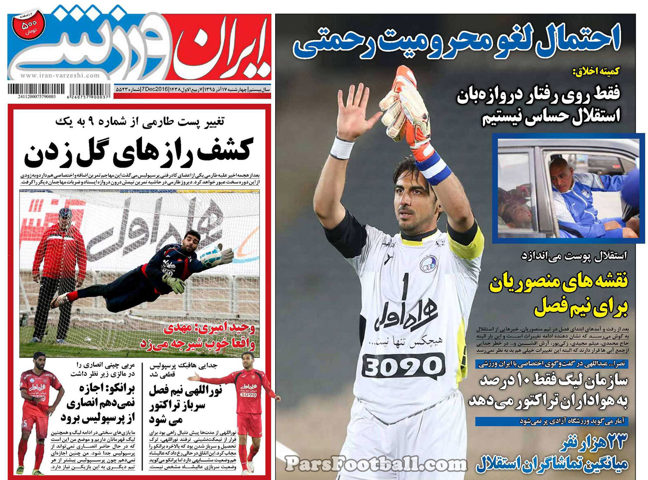 عناوین روزنامه ایران ورزشی در روز چهارشنبه ۱۷ آذر به شرح زیر است :