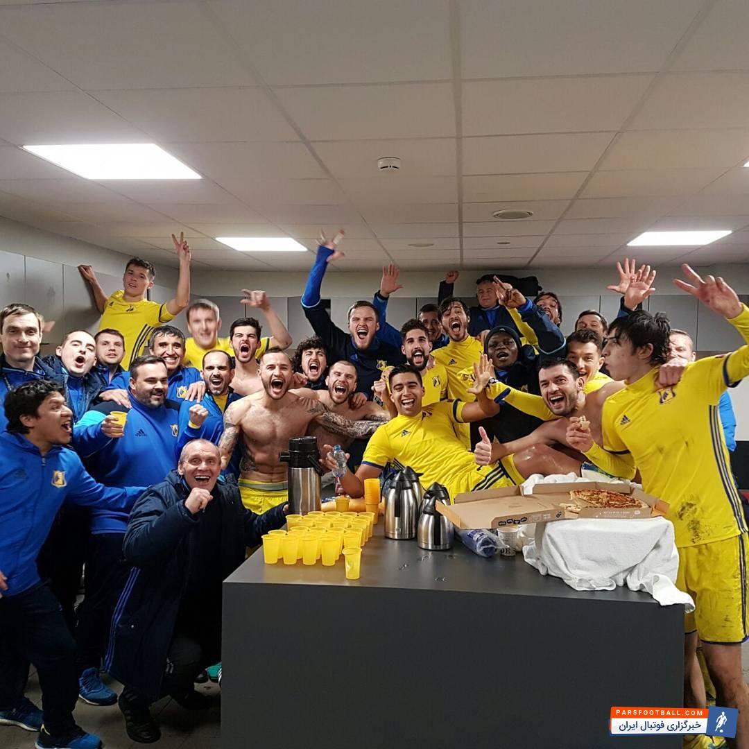 یاران سردار آزمون و عزتاللهی در تیم روستوف بعد از تساوی در خانه آیندهوون به عنوان تیم سوم راهی لیگ اروپا شدند و در رختکن جشن گرفتند.