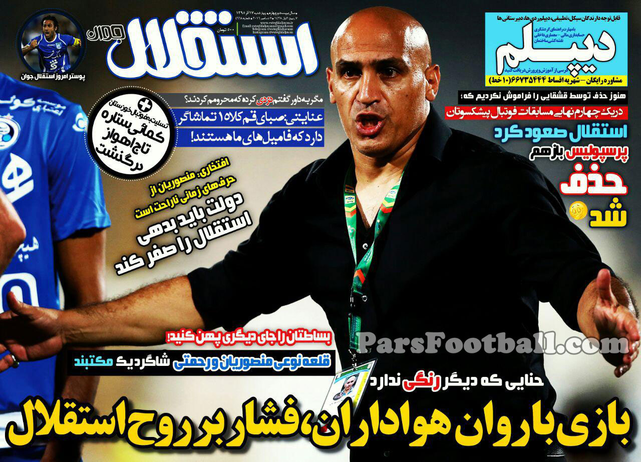 روزنامه استقلال جوان ، چهارشنبه ۱۷ آذر | استقلال صعود کرد ، پرسپولیس باز هم حذف شد