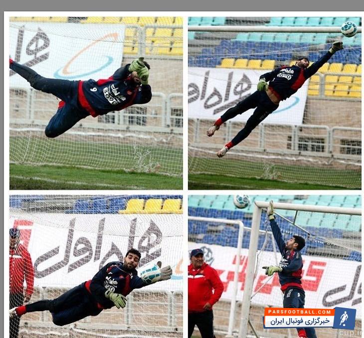 مهاجم تیم فوتبال پرسپولیس در تمرین دیروز تیمش برای دقایقی دروازه بان شد.