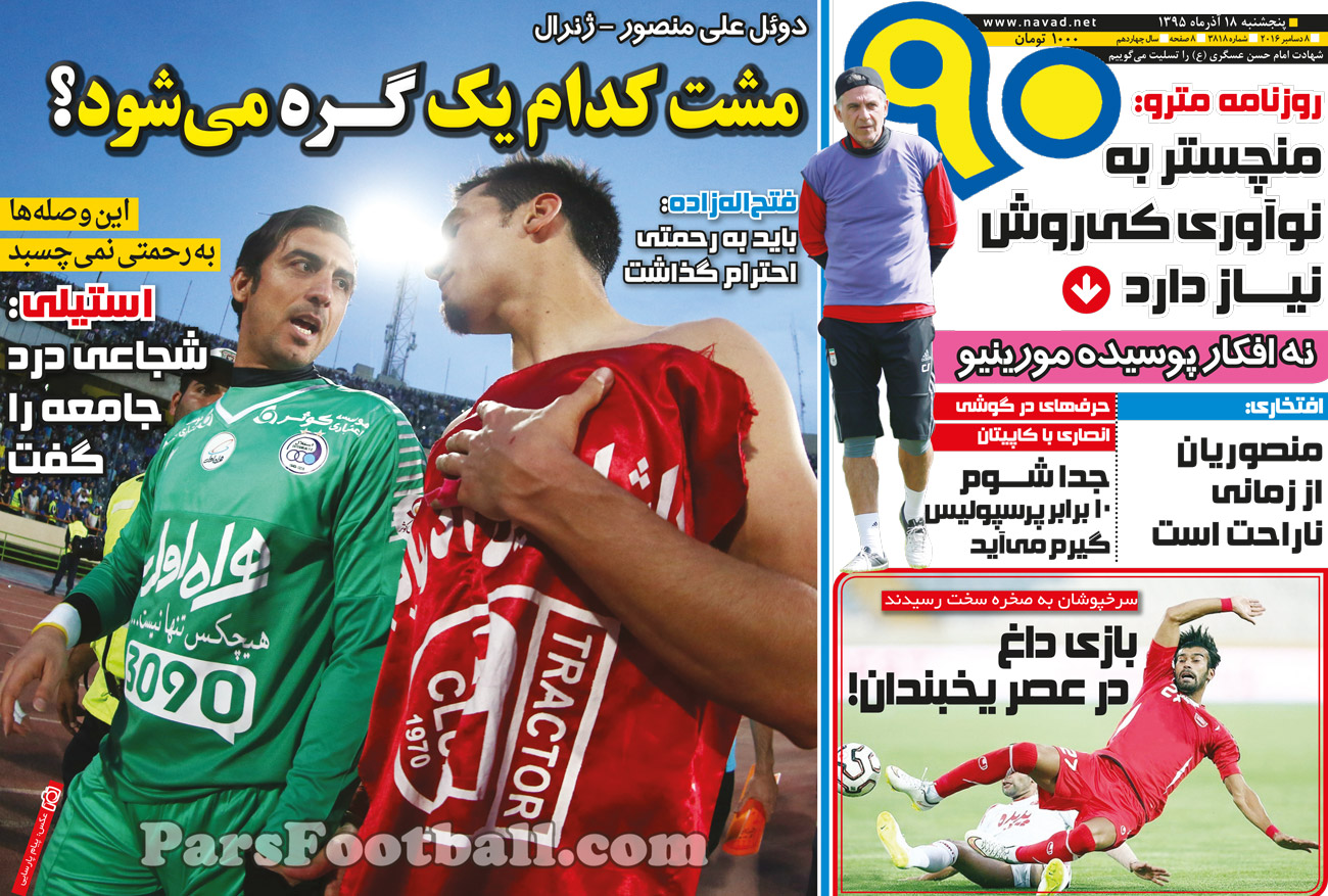 عناوین روزنامه نود در روز پنجشنبه ۱۸ آذر به شرح زیر است :