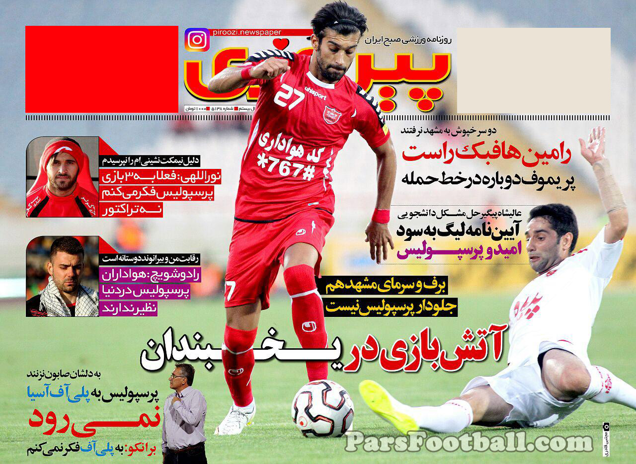 روزنامه پیروزی ، پنجشنبه ۱۸ آذر | رامین هافبک راست پریموف دوباره در خط حمله