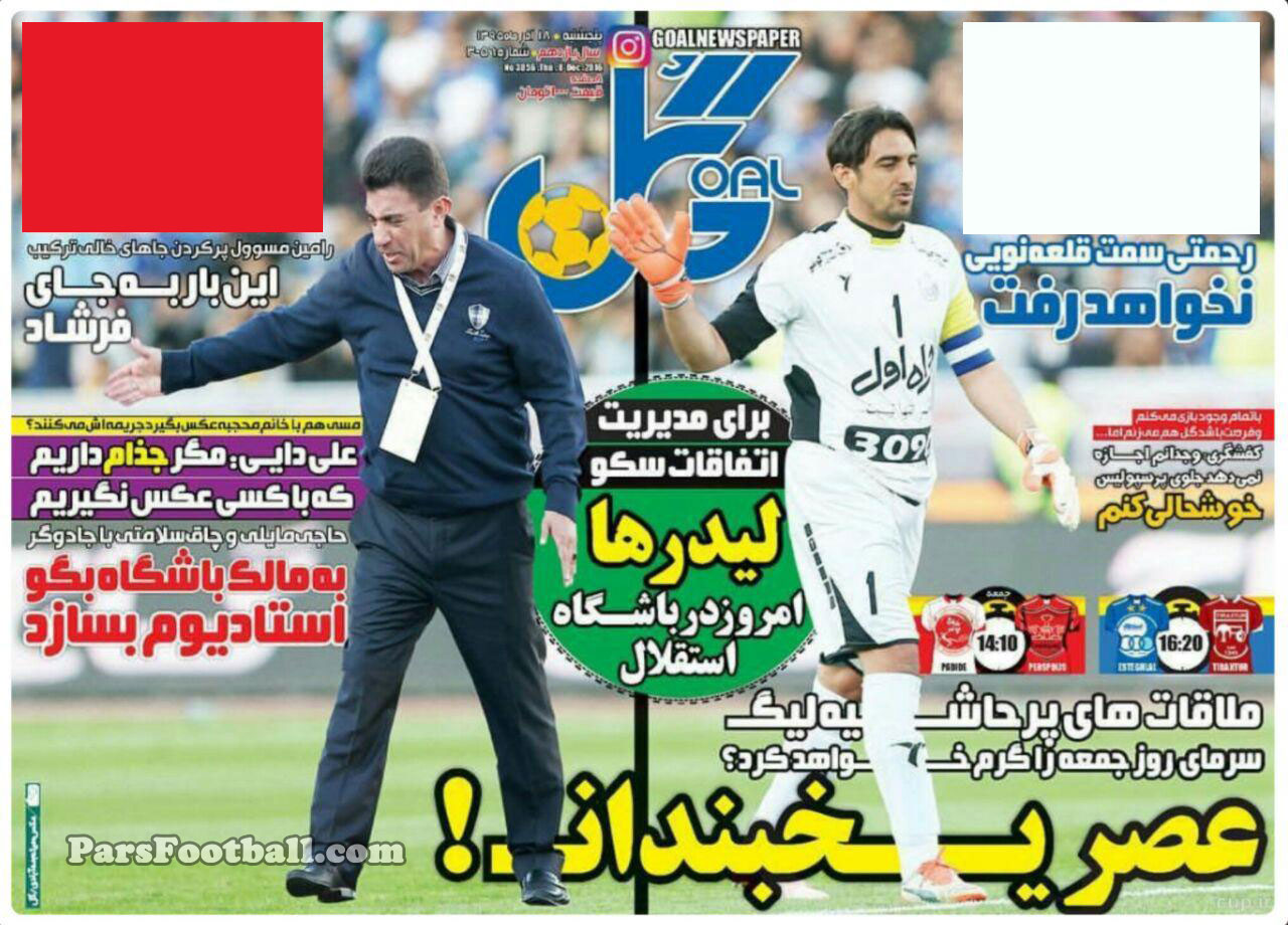 عناوین روزنامه گل در روز پنجشنبه ۱۸ آذر به شرح زیر است :