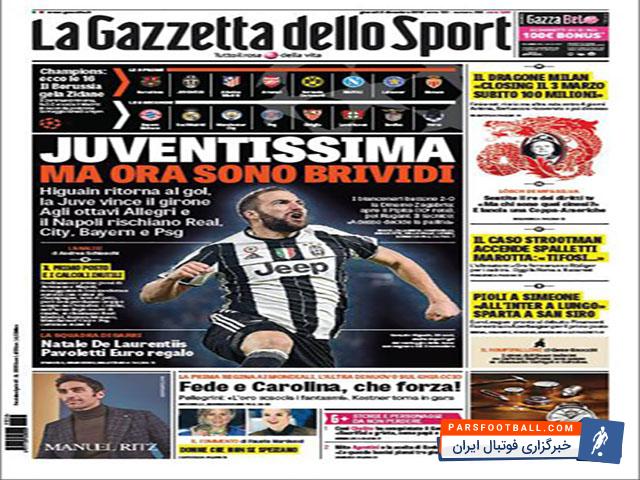 تیتر های نشریهی گاتزتا دلو اسپورت در روز پنجشنبه ۸ دسامبر به این شرح است :