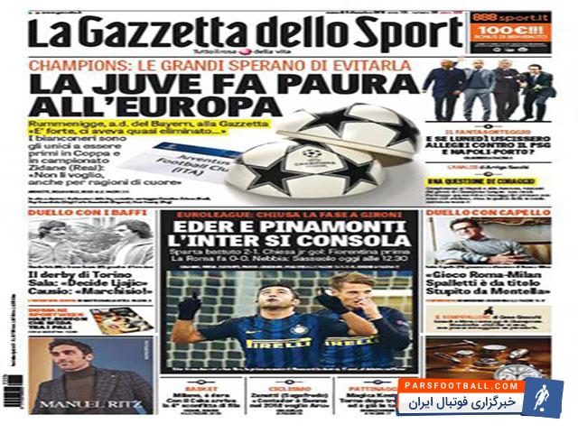 تیتر های نشریهی گاتزتا دلو اسپورت در روز جمعه ۹ دسامبر به این شرح است :