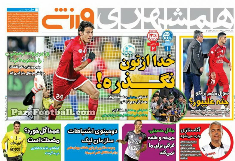 عناوین روزنامه همشهری ورزشی در روز شنبه ۲۰ آذر به شرح زیر است :