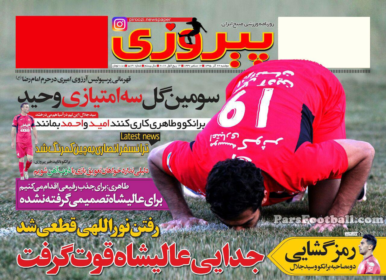 روزنامه پیروزی : برانکو و طاهری کاری کنند تا امید و احمد بمانند