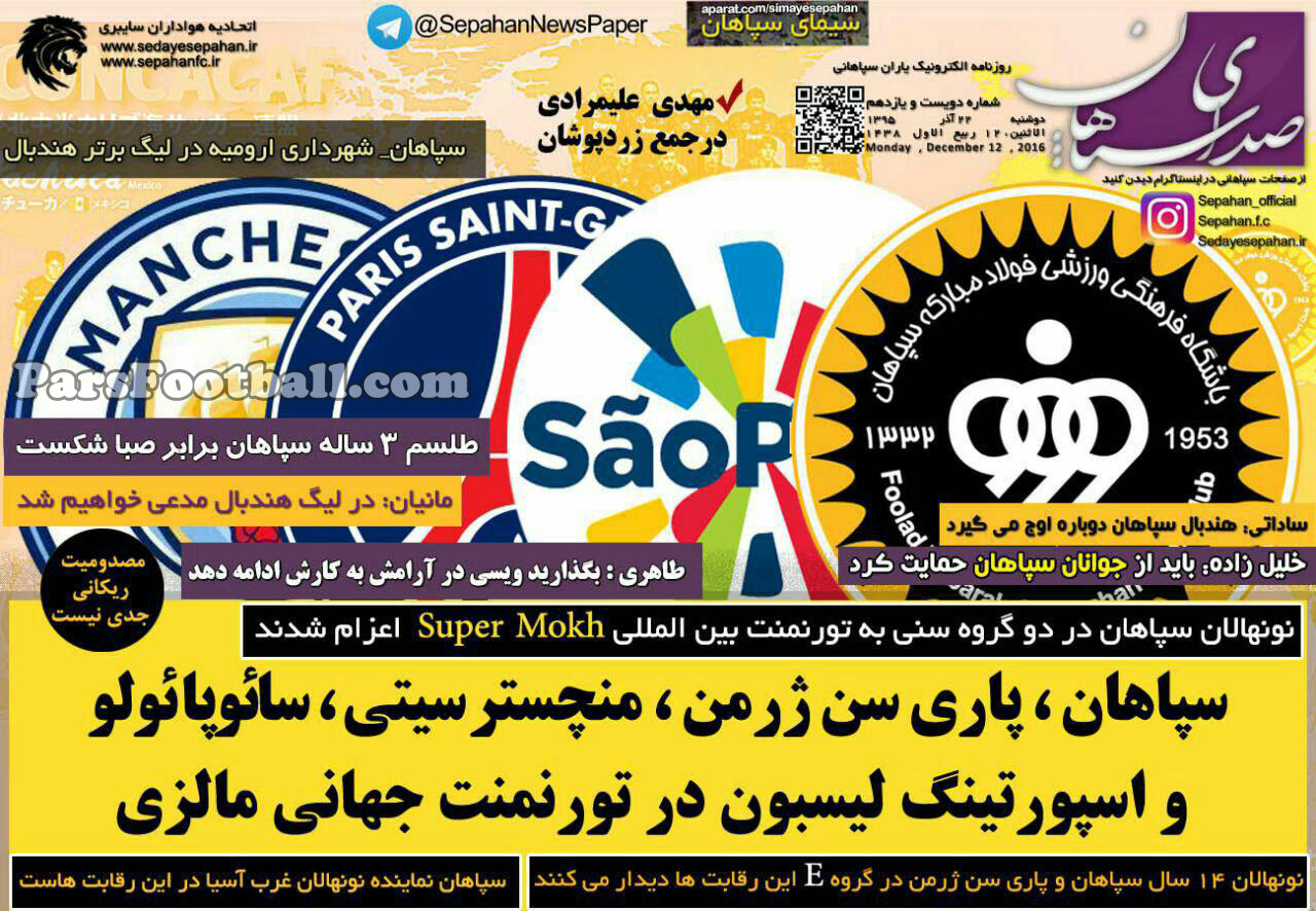 گیشه اخبار داخلی پارس فوتبال همه روزه به بررسی نشریات ورزشی می پردازد. به بررسی روزنامه صدای سپاهان می پردازیم.