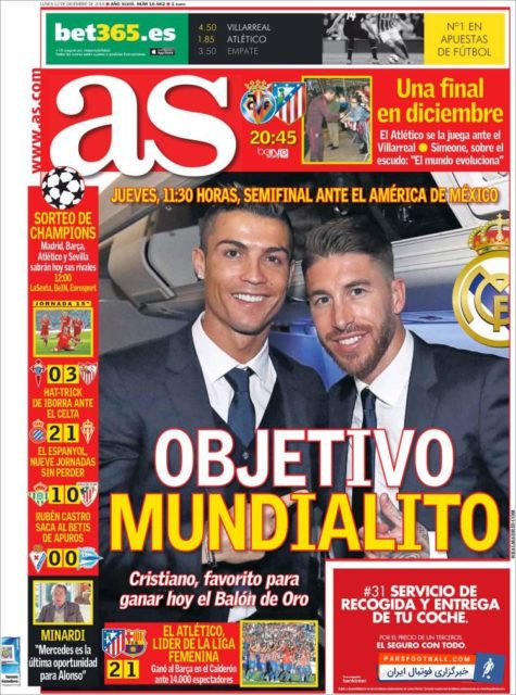 روزنامه آس ، دوشنبه ۱۲ دسامبر | هدف قهرمانی جهان