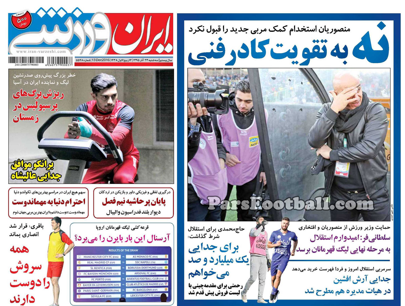 عناوین روزنامه ایران ورزشی در روز سهشنبه ۲۳ آذر به شرح زیر است :