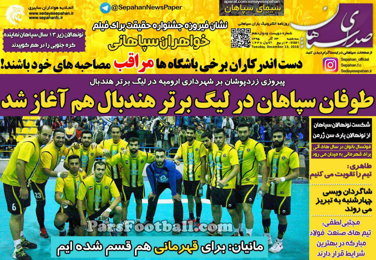 روزنامه صدای سپاهان ، سهشنبه ۲۳ آذر ؛ طوفان سپاهان در لیگ برتر