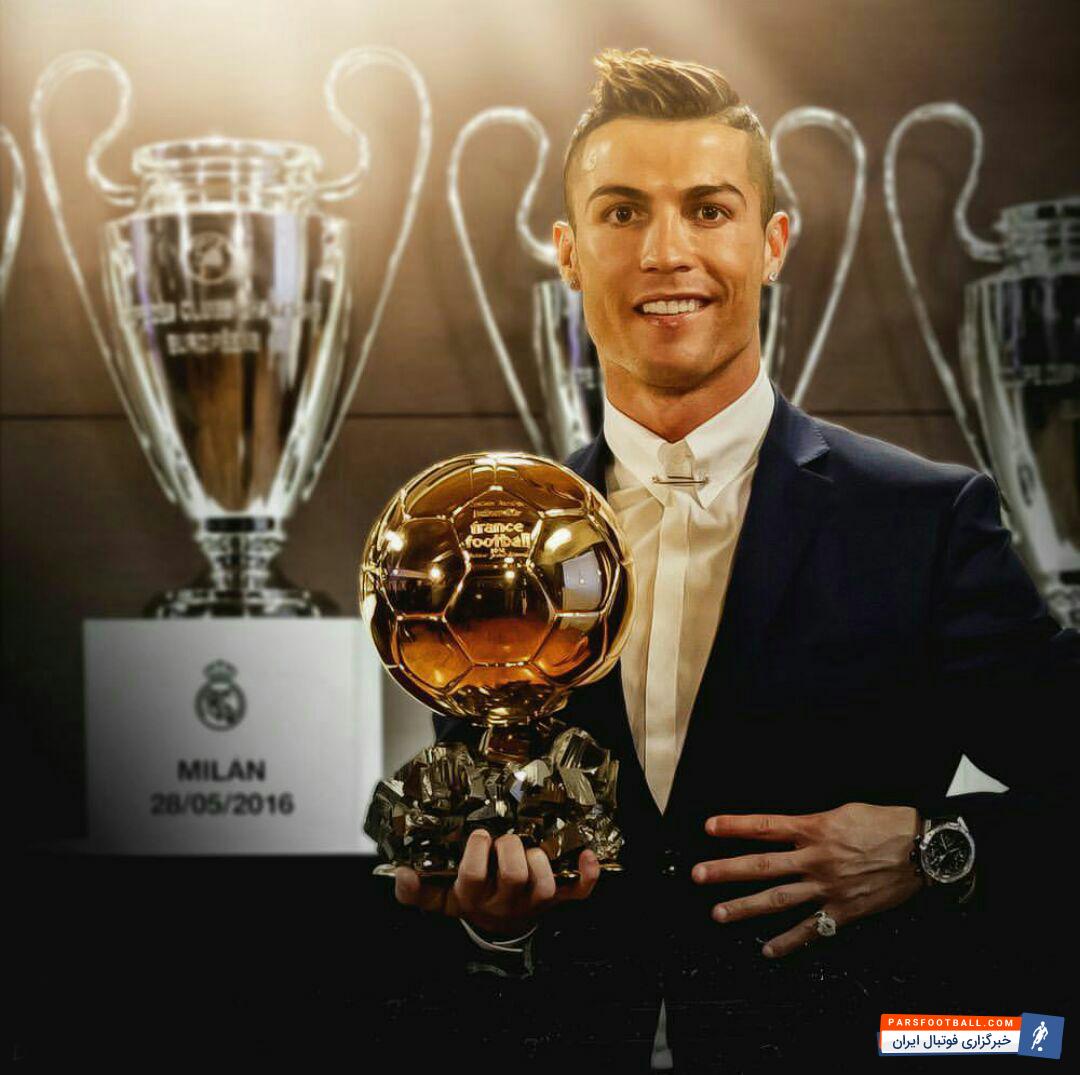 کریستیانو رونالدو در شب گذشته موفق به دریافت جایزه توپ طلای فوتبال شد و پس از دریافت جایزه عدد چهار را نشان داد که نشان دهنده چهارمین بار دریافت توپ طلا بود .