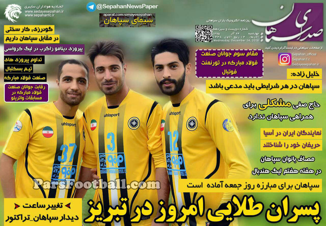 روزنامه صدای سپاهان ، چهارشنبه ۲۴ آذر ؛ سپاهان در هر شرایطی باید مدعی باشد