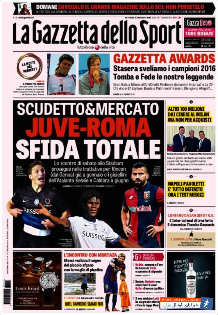 تیتر های نشریهی گاتزتا دلو اسپورت در روز چهارشنبه ۱۴ دسامبر به این شرح است :