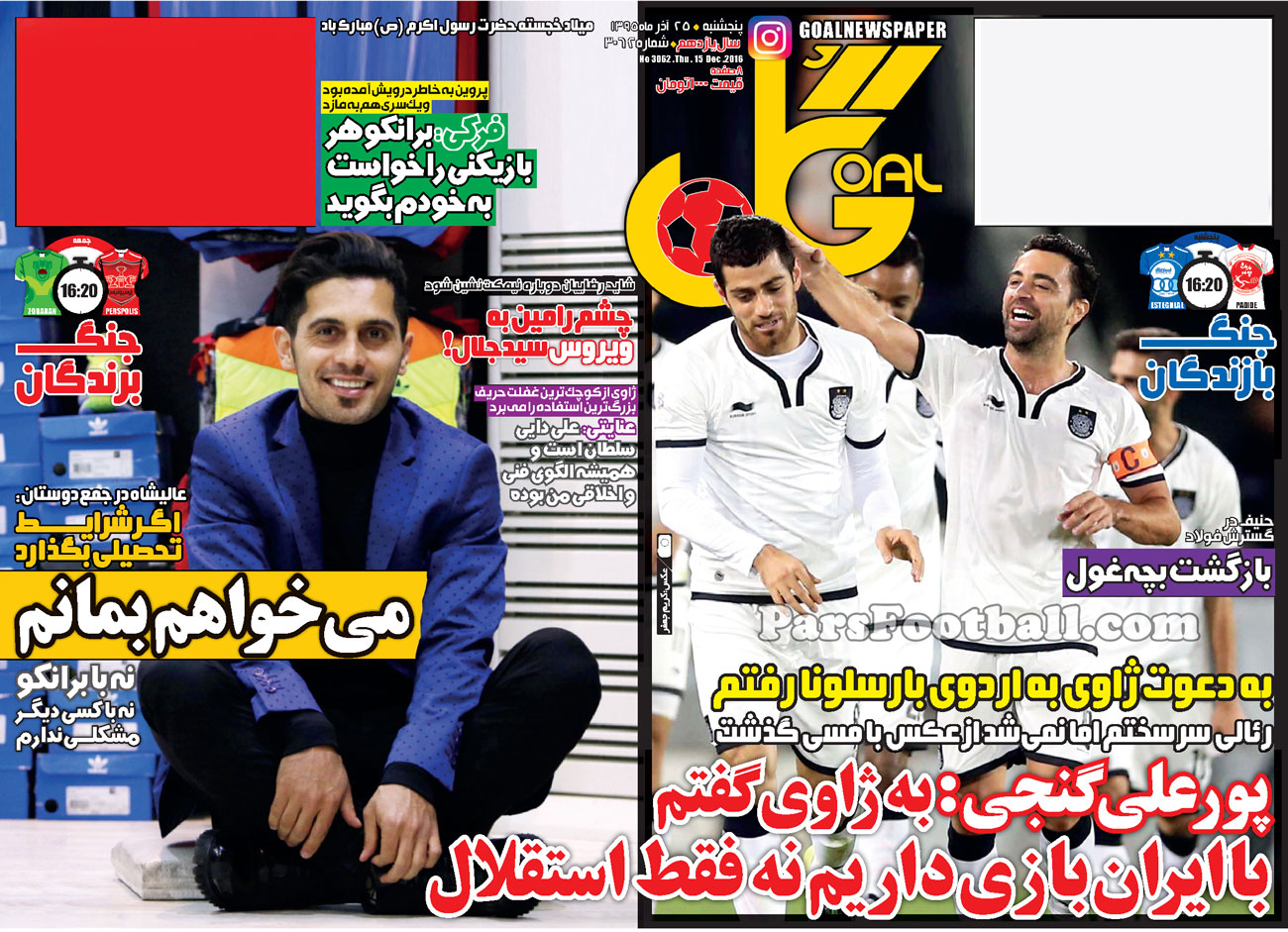 روزنامه گل ، پنجشنبه ۲۵ آذر ؛ عالیشاه حرف آخر را زد