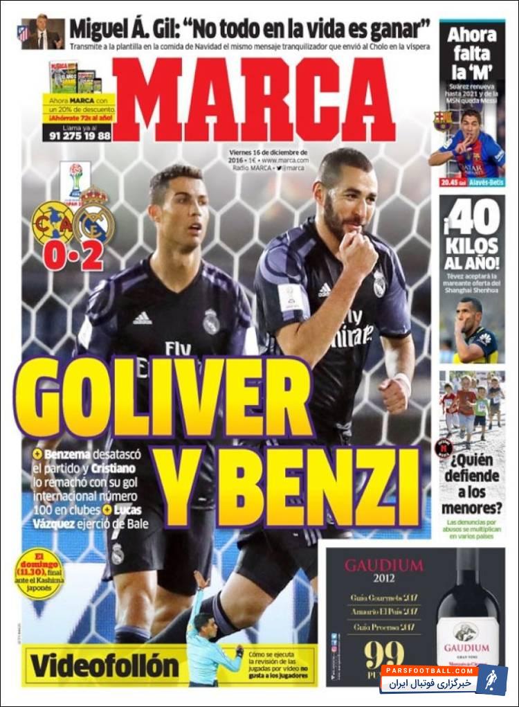 روزنامه مارکا چاپ اسپانیا ، جمعه ۱۶ دسامبر ؛ گالیور و بنزی