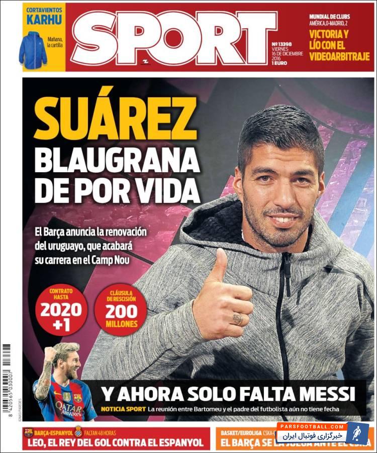 روزنامه اسپورت اسپانیا ، جمعه ۱۶ دسامبر ؛ سوارز برای همیشه