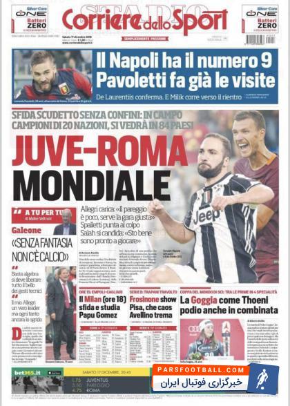تیتر های نشریهی کوریره دلو اسپورت در روز شنبه ۱۷ دسامبر به این شرح است :