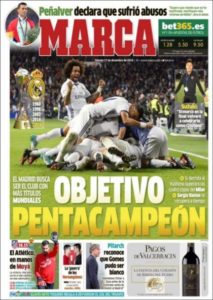 روزنامه مارکا چاپ اسپانیا ، شنبه ۱۷ دسامبر ؛ هدف ، قهرمانی پنجم