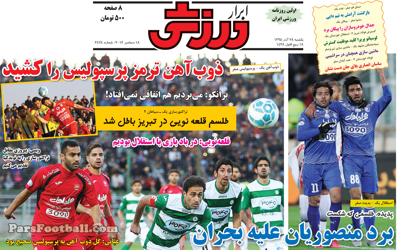 روزنامهی ابرار ورزشی ، یکشنبه ۲۸ آذر ؛ برد منصوریان علیه بحران
