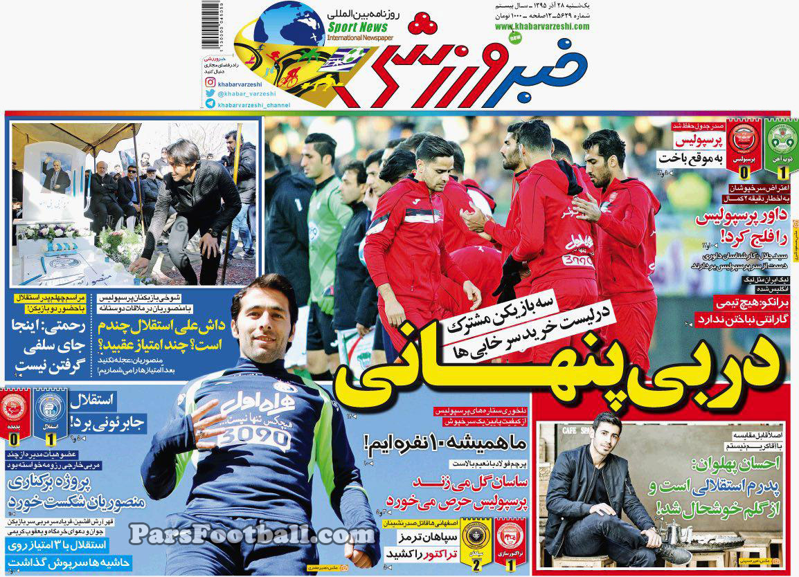 عناوین روزنامه خبر‌ورزشی در روز یکشنبه ۲۸ آذر به شرح زیر است :