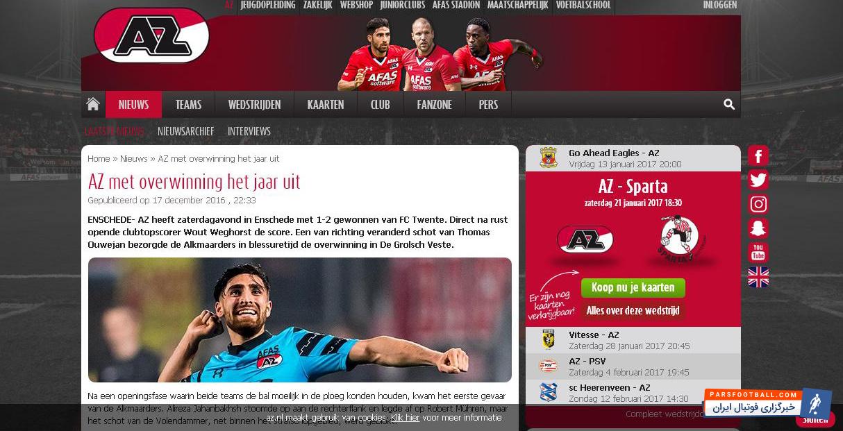 سایت رسمی باشگاه آلکمار به تمجید از علیرضا جهانبخش مهاجم ایرانی و گلزن این تیم پرداخته است.