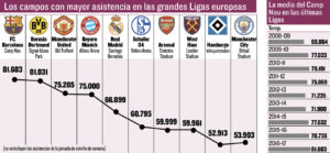 طبق آمار، ورزشگاه نوکمپ بارسلونا تا بدینجای فصل بیشترین تماشاگر را در خود جای داده است و بروسیا دورتموند از این حیث جایگاه دوم را در اختیار دارد.