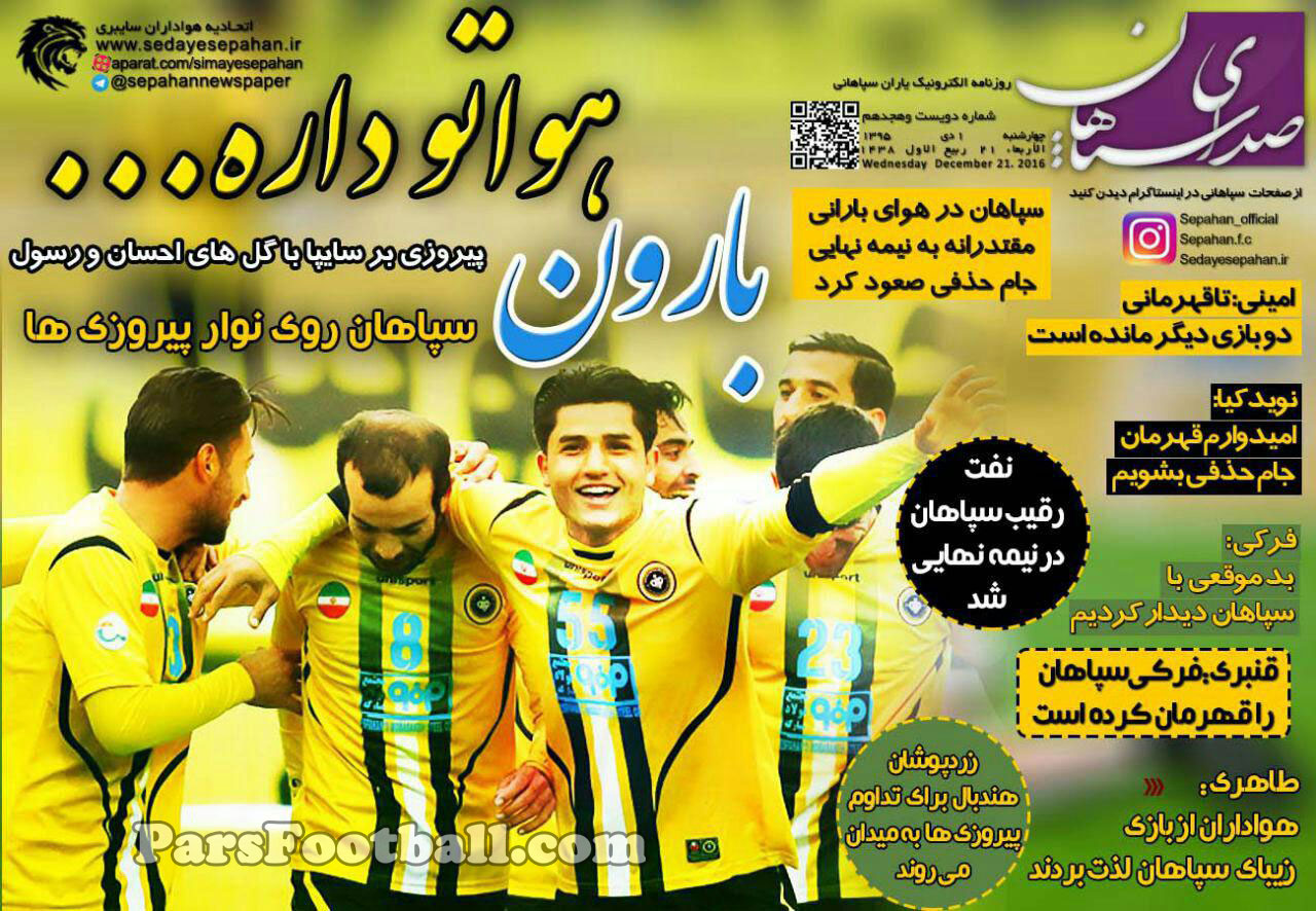 گیشه اخبار داخلی پارس فوتبال همه روزه به بررسی نشریات ورزشی می پردازد. به بررسی روزنامه صدای سپاهان می پردازیم.